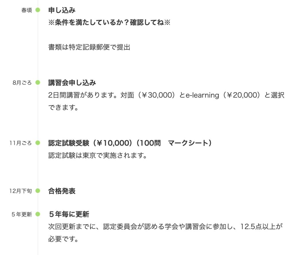 認定委員会が認める学会や講習会に参加し、更新に必要な点数(12.5点)が必要があります。