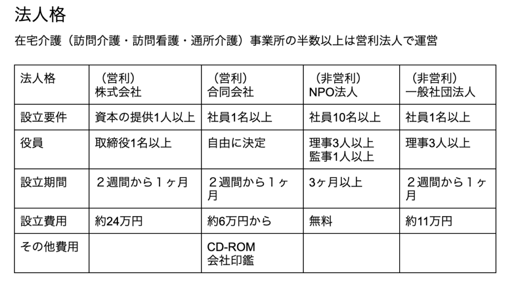 訪問看護ステーション設立にあたって、知っておくべき法人格を一覧表にしてみましたので、確認していきましょう!