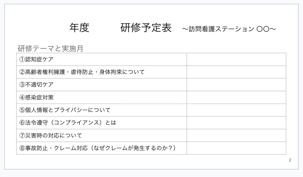 訪問看護ステーションの教育の一環として、研修は必須です。ただ訪問時間の合間で、研修の資料作成を行うのは大変ですよね。しかも、看護職員でパソコン作業が好きな人って少ない。