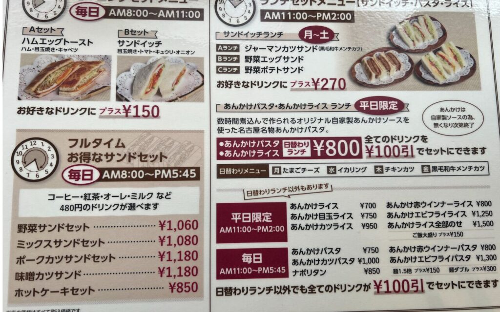 メニュー自体は、コンパルと同じような感じですがモーニングではサンドイッチも選べるのでサンド50(ゴーマル)の方がいいかなぁ〜〜なんて思ってしまいます。